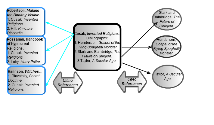 Citation Searching is the logical opposite of looking in the bibliography of the source you have in order to find related articles: you find related articles by looking for it in other bibliographies.